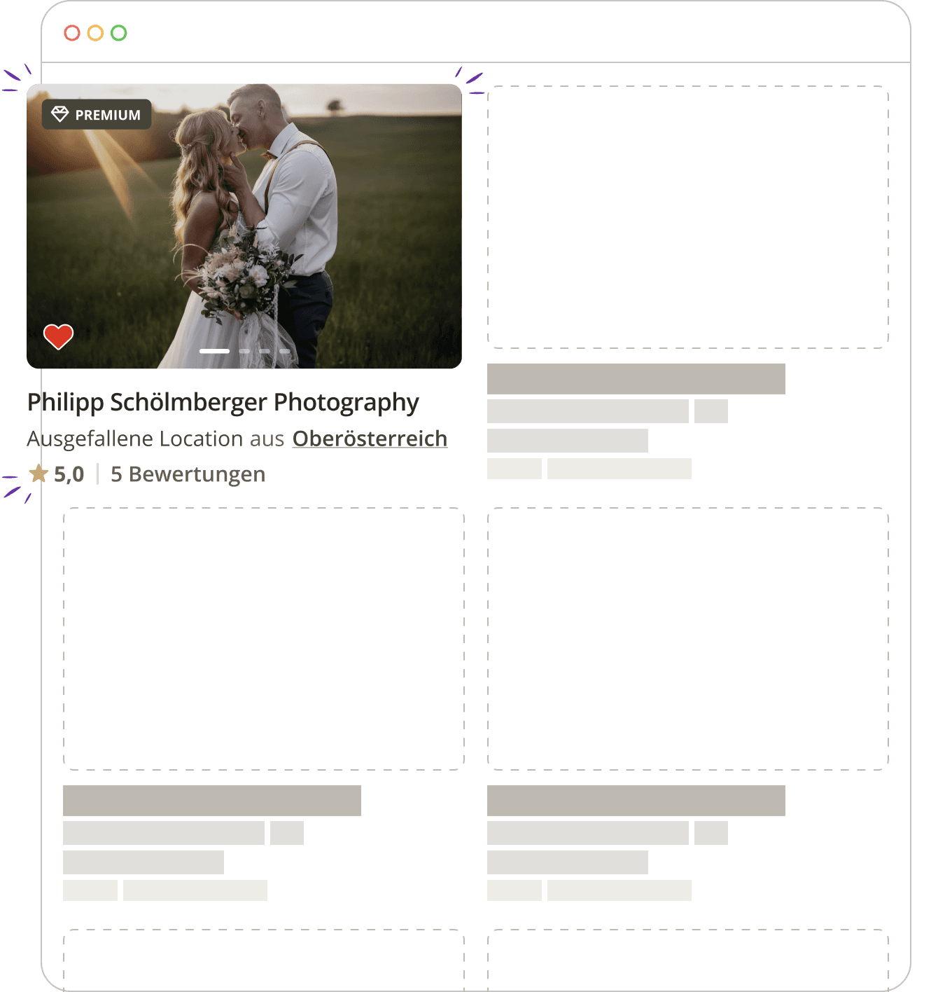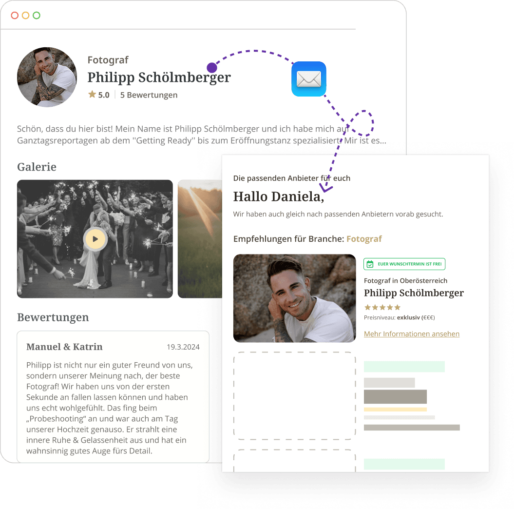 Werde Teil einer Community von über 5.500 gelisteten Hochzeitsdienstleistern in Österreich und Deutschland.
