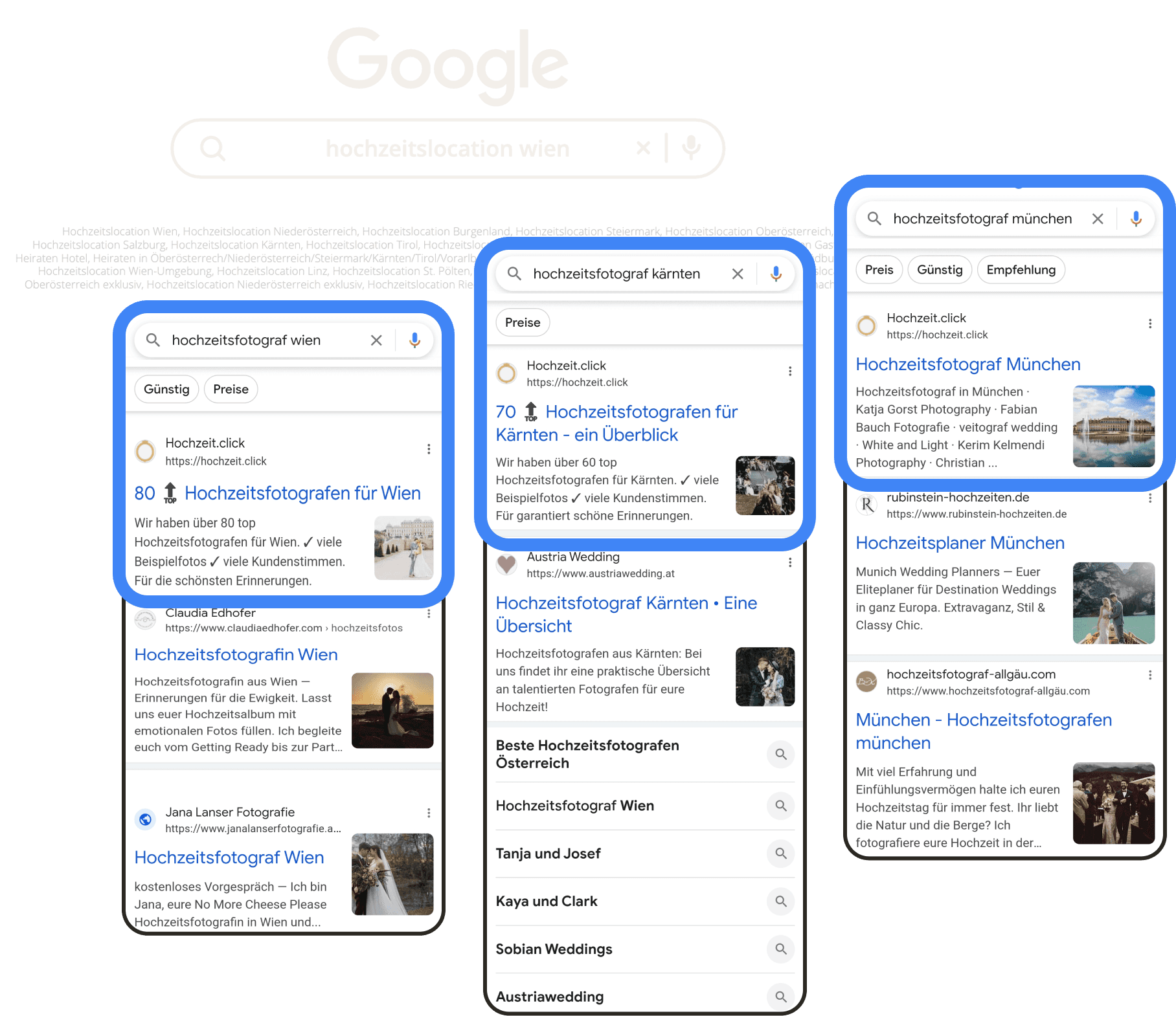 Marktführer: Mit über 23.647 Google-Seite-1-Rankings und mehr als 2.5 Millionen Nutzer:innen pro Jahr sind wir das sichtbarste Hochzeitsnetzwerk des Landes.